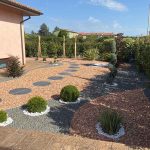 Giardino roccioso, Viterbo Granulati, bordure e passi giapponesi per un giardino colorato e funzionale In questa casa privata nella provincia di Viterbo, è stato realizzato un giardino roccioso che grazie all’utilizzo di bordure flessibili e camminamenti in pietra naturale ha re